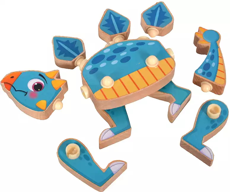 - Игрушка состоит из деревянных частей, соединенных деревянными штифтами.