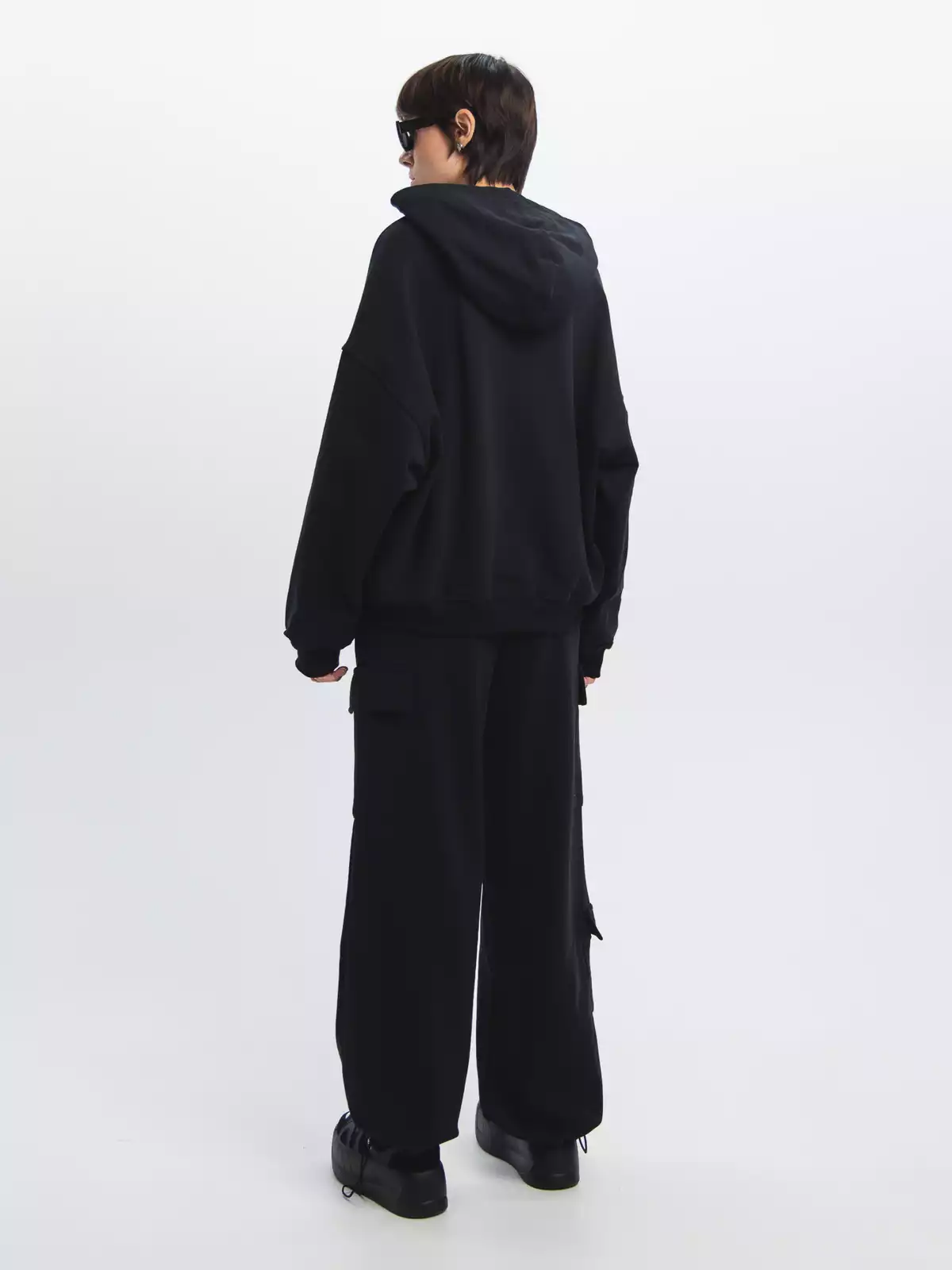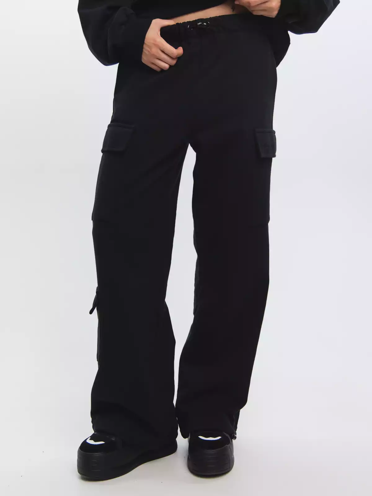 Брюки карго - штаны свободного пошива с накладными карманами подчеркнут достоинства и скроют все недостатки! Изделие выполнено из плотной и легкой хлопковой ткани с небольшим добавлением полиэстера. Обратите внимание, что штаны за счет шнурков в нижней части брючин легко превращаются в идеальные джоггеры. Базовые брючки имеют достаточно высокую посадку, на поясе предусмотрена резинка для наибольшего комфорта. Их можно носить летом в демисезон и даже зимой, надев под них термобелье. Универсальные и практичные брюки с карманами-карго идеально впишутся в твой повседневный гардероб и подойдут под любой стиль и настроение.